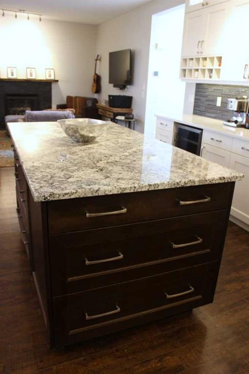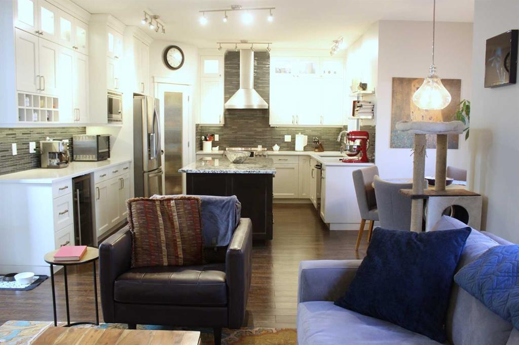 It’s everything you could want in a large home for the large family. Almost 3000 sq/ft of living space across all 3 levels with 5 bedrooms on a pie shape lot providing a big back yard. Nestled on a stunning location, tucked away in a quiet corner of the street overlooking a beautiful park/playground, just around the corner from all your daily needs at the local shopping centre. The kitchen is breathtaking with it’s huge granite island along with abundant counter and cupboard space and high-end finishes. The cozy living room is well integrated into the open concept of the main floor. The dining room is elegant as is the discrete little powder room just down the hall. Main floor conveniences like the generous mudroom, central laundry and smart walkthrough pantry will impress. No carpets on the main floor or upper level makes the living spaces sleek and clean. The Master bedroom is spacious and well appointed with walk-in closet and 5 pc en-suite bathroom. Two bedrooms and full bath complete the upper level which also boasts peek-a-boo views of the mountains and COP. The lower level is host to 2 more generous bedroom with big bright windows, 4 pc bath and plenty of storage space. The house has been well tended and upgraded with genius features including heat pump cooling/heating system which uses no gas when it’s warmer than -5 Celsius and solar panels that provide electric rebates and credits for a good portion of the year. The back yard is the envy of all, with extensive deck space, tons of yard and a gorgeous atmospheric retreat under the lighted pergola and outdoor fireplace mantle: perfect for cooling autumn nights. Absolutely no compromises or disappointments here, see for yourself and get ready to move home.